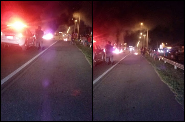 O local do acidente fica distante cerca de três quilômetros do local onde, mais cedo, por volta das 20 horas, aconteceu uma manifestação. Moradores protestaram contra a falta de energia elétrica na comunidade do Nova Canaã. Um congestionamento de cerca de três quilômetros se formou na rodovia. Após uma hora de protesto, a Autopista Fluminense, a Polícia Rodoviária Federal e o Corpo de Bombeiros liberaram a pista.