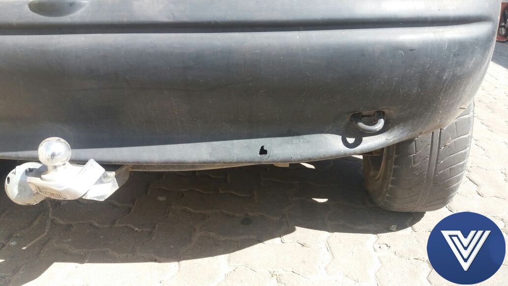 A jovem estava no banco de trás deste automóvel Corsa de cor cinza que aparece na foto. O veículo era conduzido por um homem de inicial T., estando no banco do carona o marido da vítima, R.S.P., 23 anos.