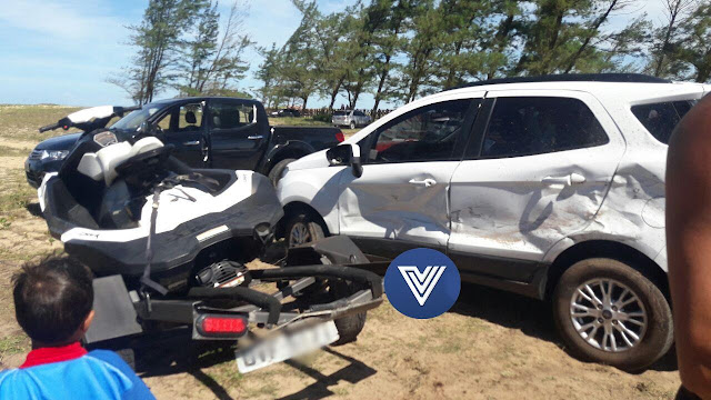 Segundo populares informaram ao VNOTÍCIA, o reboque do veículo Mitsubishi L200 cor preta transportando um Jet Ski se soltou e, desgovernado, atingiu um adolescente de 15 anos que caminhava às margens da estrada. Depois de atingir o jovem, o reboque colidiu na lateral de um Ford EcoSport branco, que ficou bastante avariado.