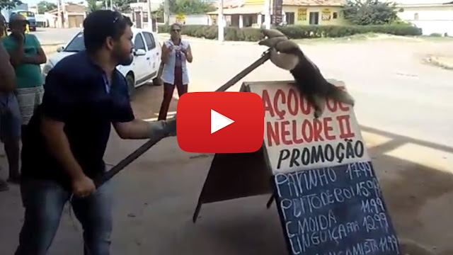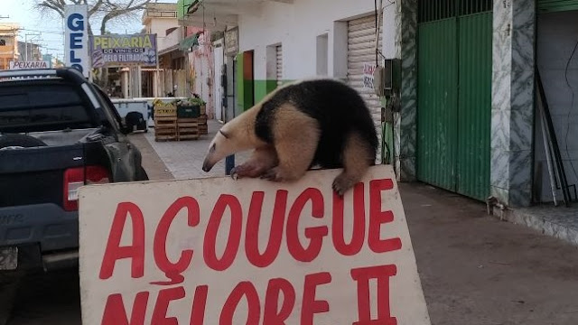 Quando foi capturado, o tamanduá estava sobre a placa de um açougue, na Avenida Oswaldo Barbosa Resende (Avenida Principal), no Centro de Santa Clara.
