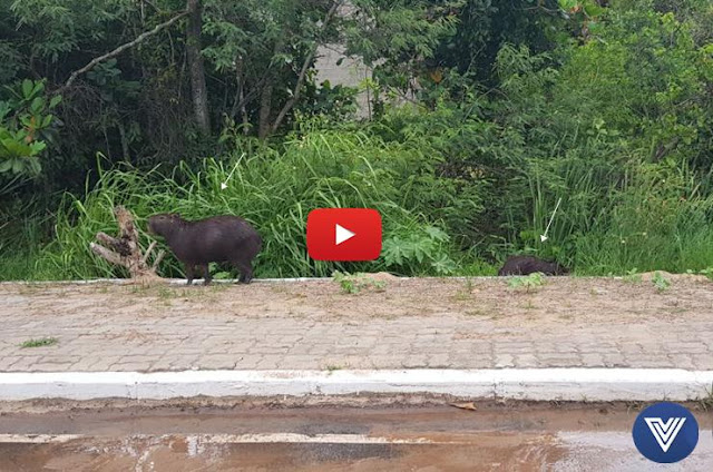 Vídeo do VNOTÍCIA em um momento raro: duas capivaras, cujo habitat é a Lagoa do Salgadinho, aparecem no calçadão, às margens da Lagoa, no centro de São Francisco de Itabapoana.