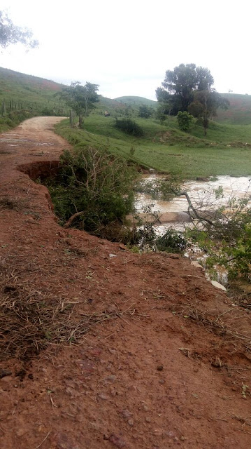 Uma ponte que fica na estrada entre Pingo D’Água e Santa Luzia foi arrastada pela força da água do Ribeirão Guaxindiba.