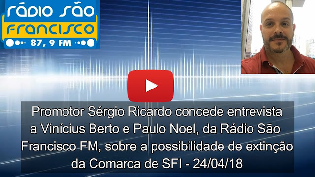 Na manhã desta terça-feira, 24, o promotor de Justiça Sérgio Ricardo concedeu entrevista a Vinícius Berto e Paulo Noel, no Jornal São Francisco é Notícia da Rádio São Francisco FM. O tema foi a possibilidade de fechamento da Comarca de São Francisco de Itabapoana. Confira:
