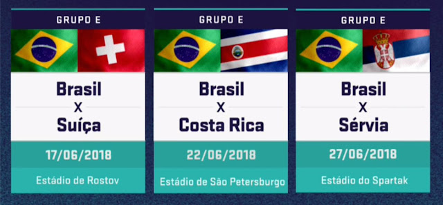 O Brasil estreia na competição no próximo domingo (17), às 15h, jogando contra a Suíça, na Rostov Arena, em Rostov-on-Don.