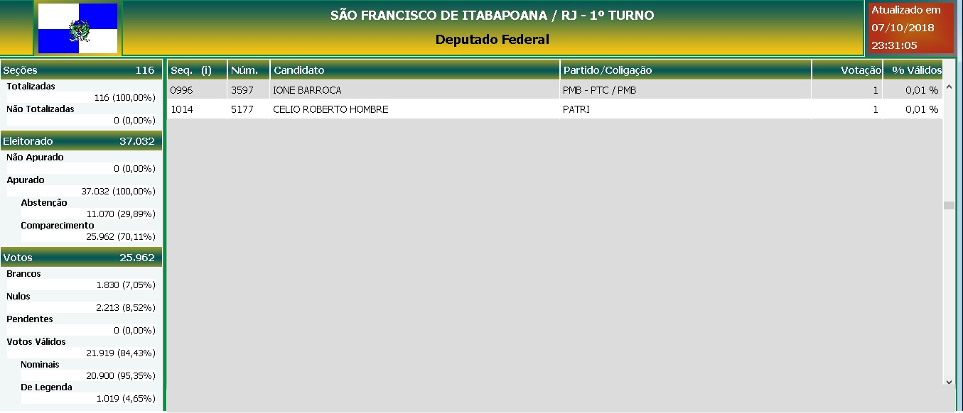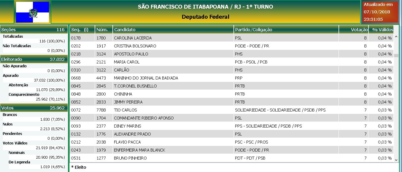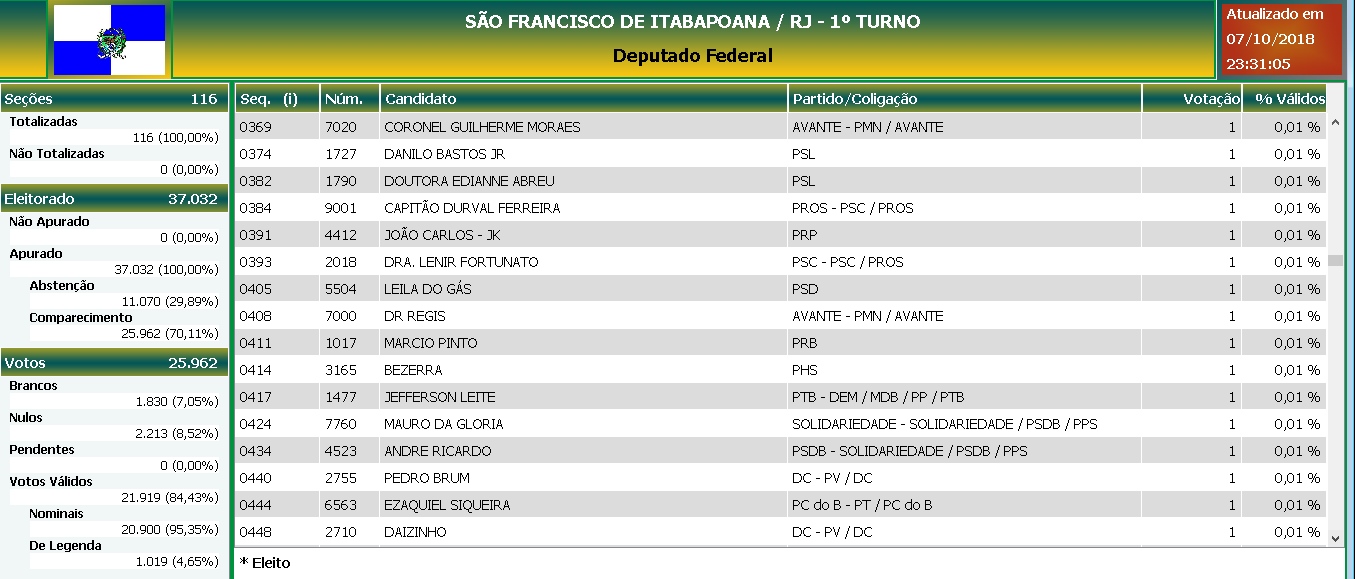 Confira todos os candidatos a deputado estadual que foram votados em SFI