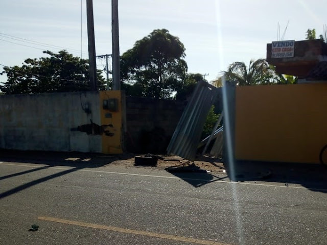 Com o choque dos veículos, o Crossfox ficou desgovernado, capotou na pista, atingiu o muro e o portão de uma residência e em seguida atropelou o pedestre.