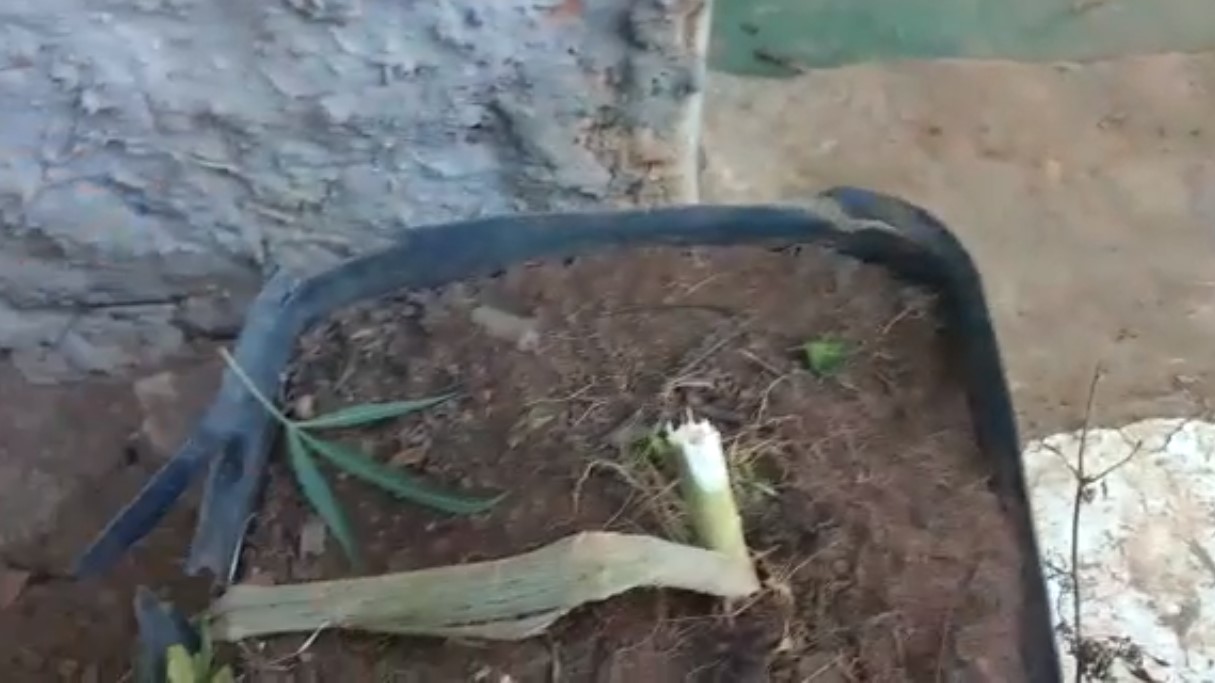 Ao chegarem ao local, os policiais tiveram a entrada no imóvel franqueada. Com a chegada da PM, um dos elementos se escondeu no banheiro e o outro correu para o quintal e arrancou, de um vaso, um pé de maconha, o jogando na casa ao lado.