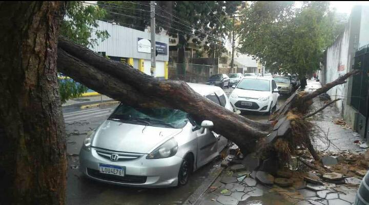 Quem estava na rua buscou abrigo em lojas comerciais. Outros, de carro, tiveram que parar devido aos fortes ventos.