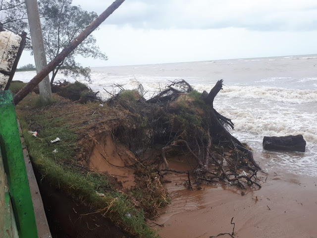 O avanço do mar, que provocou apreensão a moradores de Atafona e Açu, em São João da Barra, também vem provocando estragos na Praia de Guaxindiba. Até o final da tarde desta sexta-feira, 22, a Secretaria Municipal de Defesa Civil já havia contabilizado a queda de três postes e 12 árvores da espécie Casuarina na Avenida Atlântica.