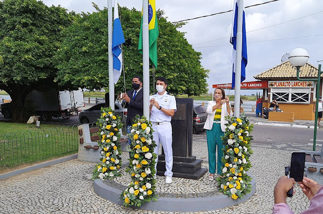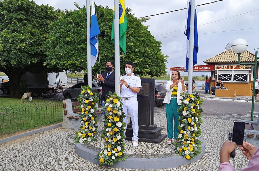 Pela parte da manhã, com tradicionalmente ocorre, foi realizada pelo governo municipal, uma cerimônia de hasteamento dos pavilhões nacional, estadual e municipal, com a participação da prefeita do município Carla Machado, do presidente da Câmra Municipal e do representante da Marinha do Brasil.