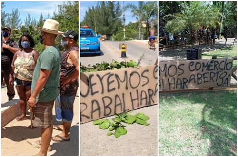 Uma faixa dizia: “Queremos trabalhar. Comércio aberto já”. A manifestação pede ao executivo de São João da Barra a flexibilização com abertura já do comércio.